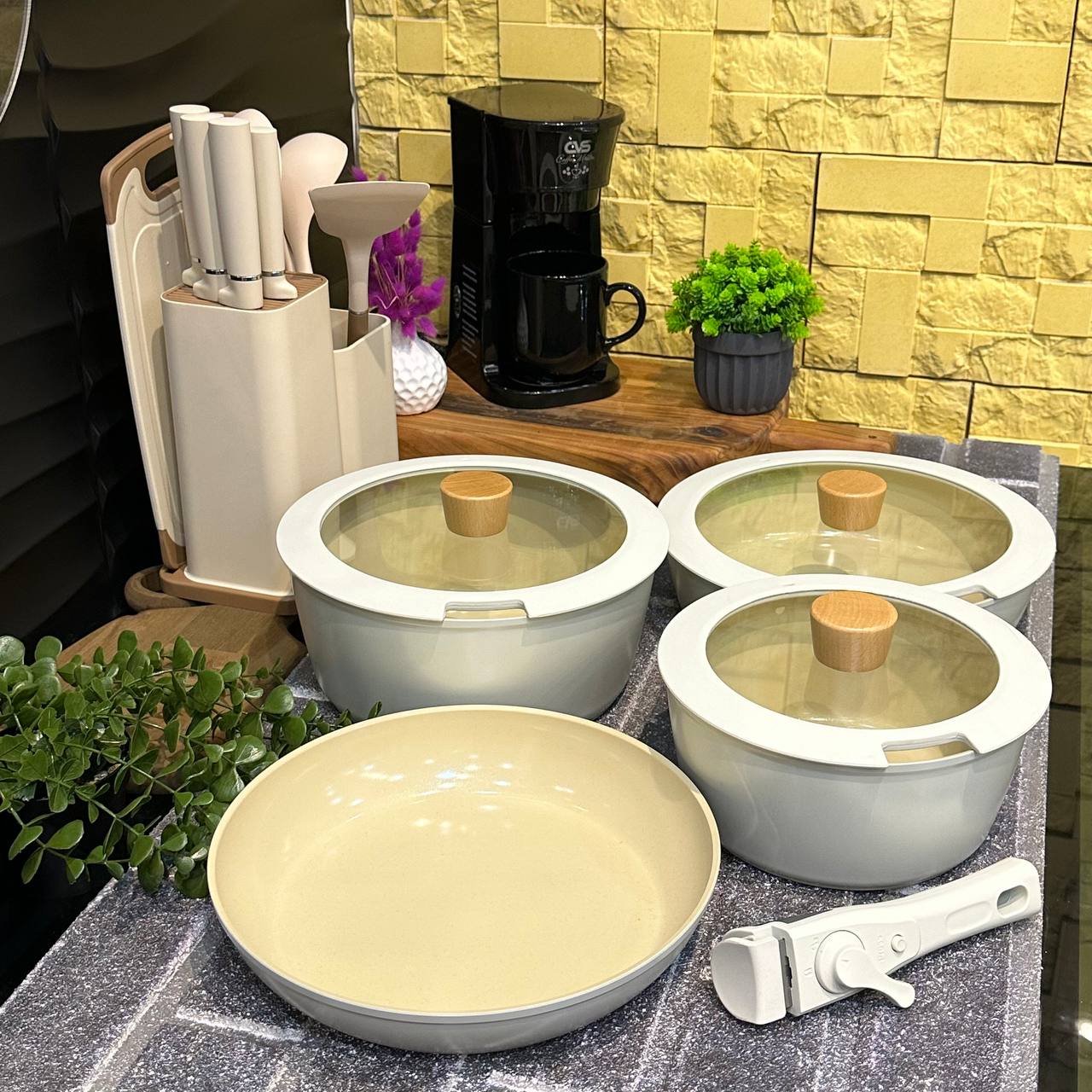 Malzeme/Materyal: Alüminyum DökümÜrün Ölçüleri: 24 cm x 10 cmÜrün Hacmi: 3,8 LT.Ürün Rengi: Bej1 Adet 24 cm Derin Tencere + Kapak1 Adet 28 cm Derin Tencere + Kapak1 Adet 28 cm Basık Tencere + Kapak1 Adet 28 cm Tava + 6 Adet Silikon TutaçÇizilmelere karşı yüksek direnç & sağlamlık testleri yapılmıştır.Özel dövme işlemi daha saf bir Alüminyum ve extra mukavemet sağlar.İndüksiyon elektrikli, gaz ve radyan ocakların tamamında kullanılabilir.Hafif tasarım ve ısı iletkenliği sayesinde kolay kullanım ve konfor sağlar.Ergonomik ve hafif tasarımı sayesinde bilek kazalarının önüne geçilmek istenmiştir.New Xtrema kaplaması sağlamlık ve yapışmazlık performansları ile güçlendirilmiştir.Olağanüstü ısı iletkenliği yiyeceklerin daha hızlı pişmesine ve kısa sürede zengin ve lezzetli tatların oluşmasına yardımcı olur.