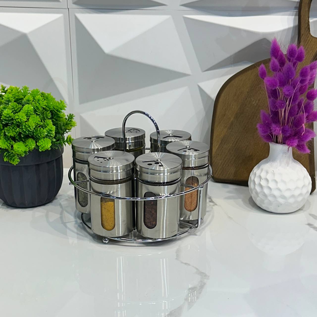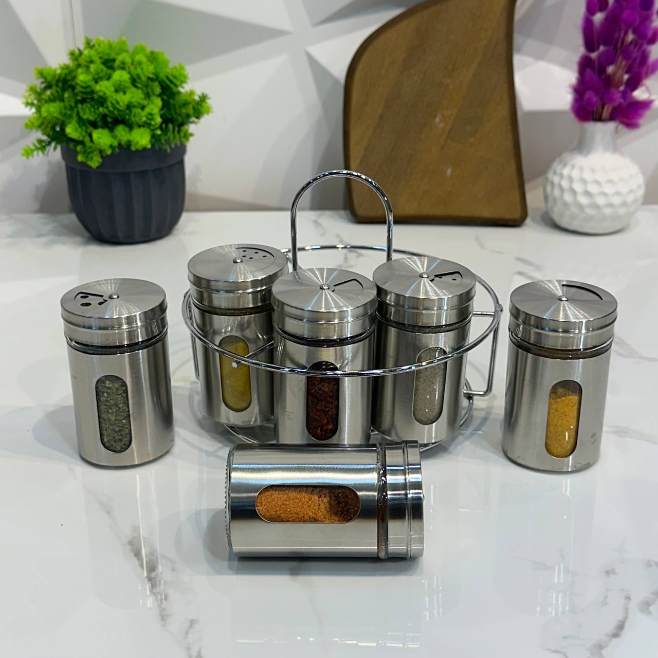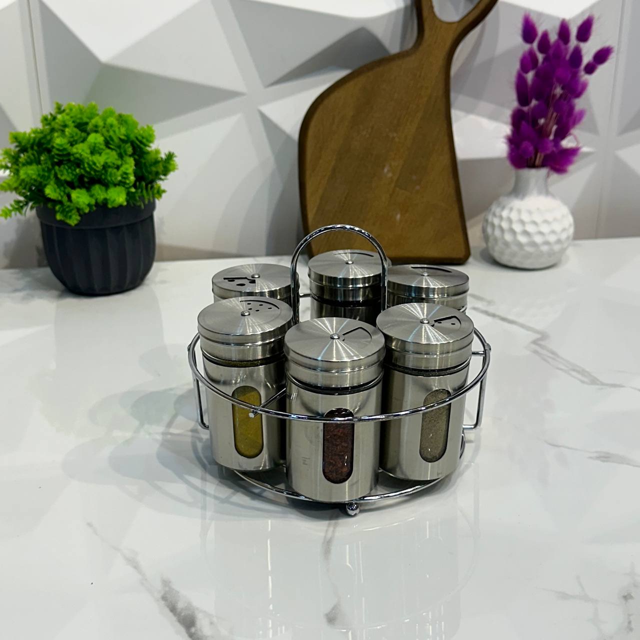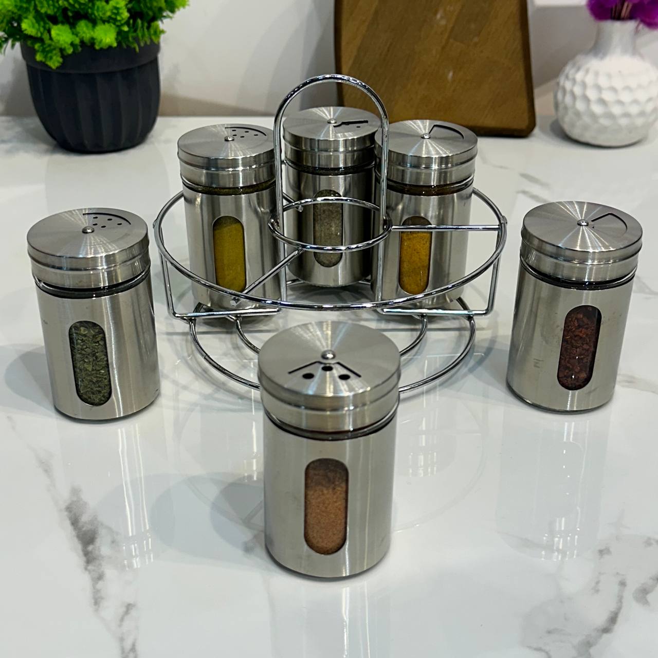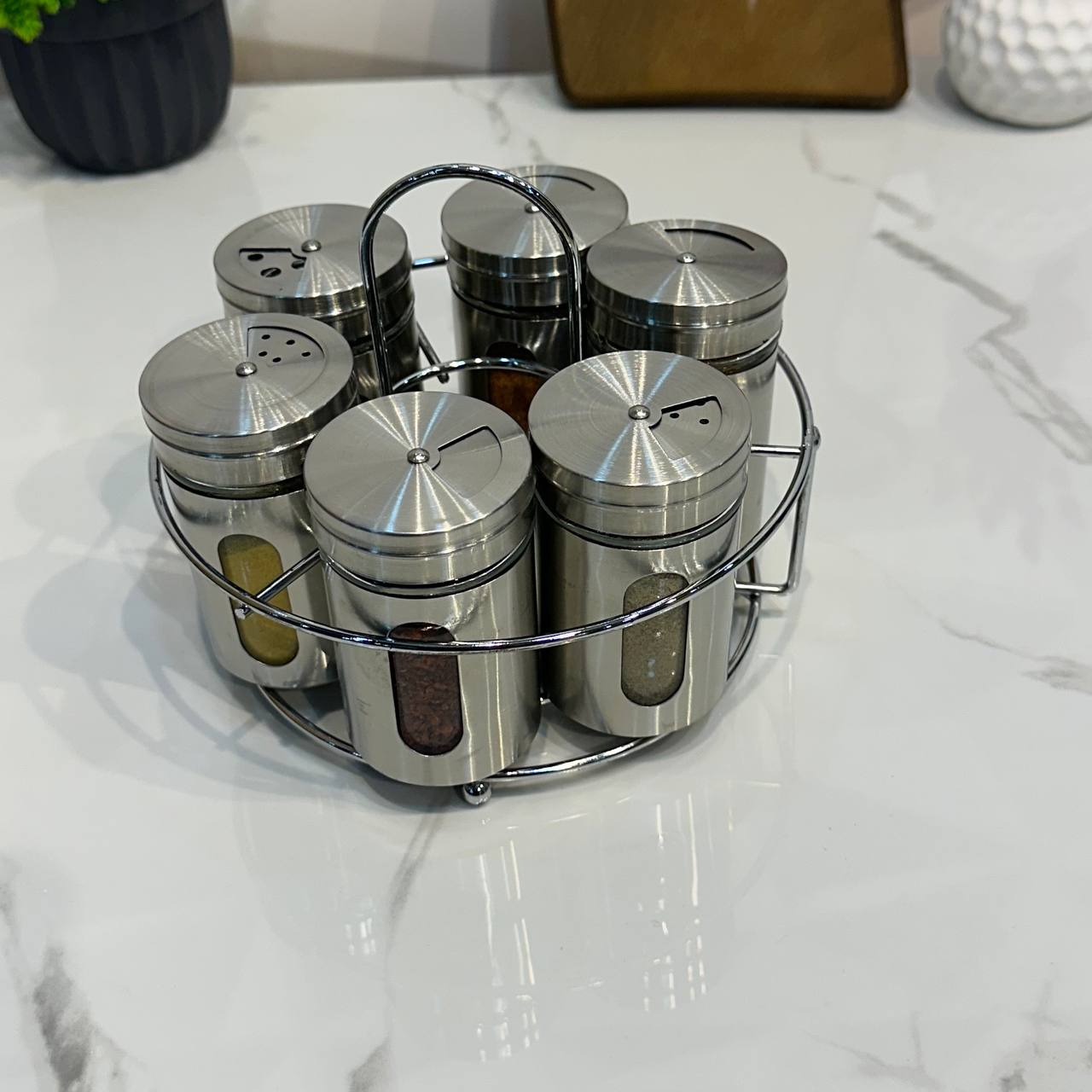 Mien Korumalı Döner Standlı 7'li Top Kapaklı Yağdanlıklı Baharat Set